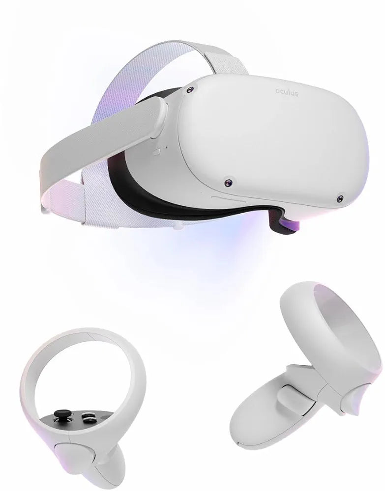Le casque Meta Quest 2 est un dispositif VR tout-en-un équipé d’un écran LCD haute résolution (1832×1920 px par œil), d’un processeur Snapdragon XR2, de 6 Go de RAM, de 128 ou 256 Go de stockage, offrant un suivi 6 DoF sans capteurs externes, une fréquence allant jusqu’à 120 Hz, et une expérience immersive sans fil compatible avec le PC via Oculus Link ou Air Link.
