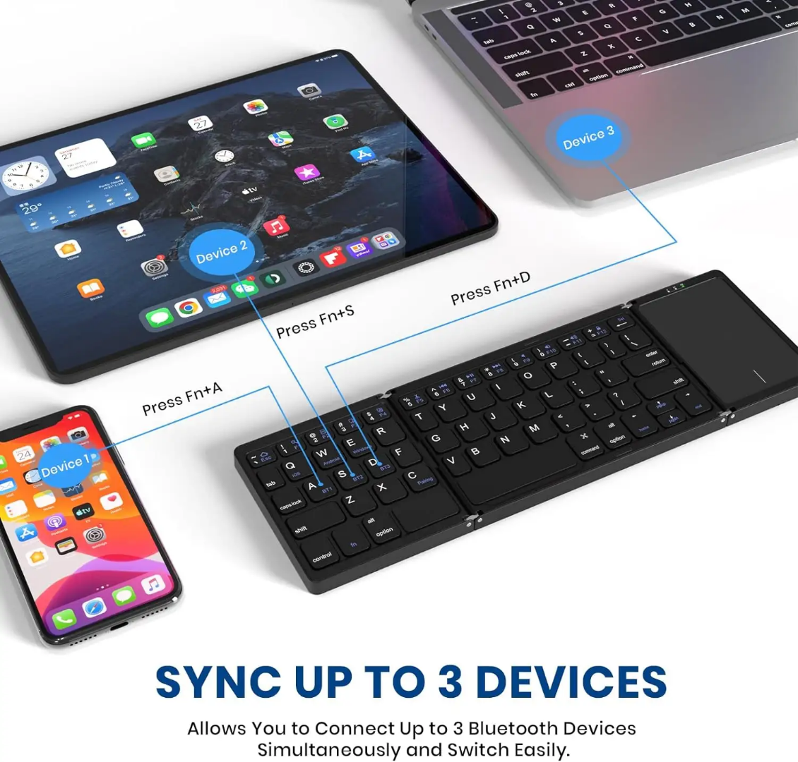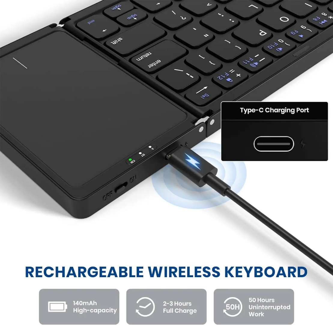 Fabriqué avec des matériaux premium, ce clavier allie robustesse et élégance, avec une finition soignée qui résiste aux usages intensifs. Son autonomie longue durée vous garantit des heures de travail ou de divertissement sans interruption, et sa recharge rapide via USB-C vous permet de rester toujours opérationnel. Que vous soyez étudiant, professionnel ou passionné de technologie, ce clavier pliable Bluetooth est le compagnon parfait pour une productivité sans limites, où que vous soyez.