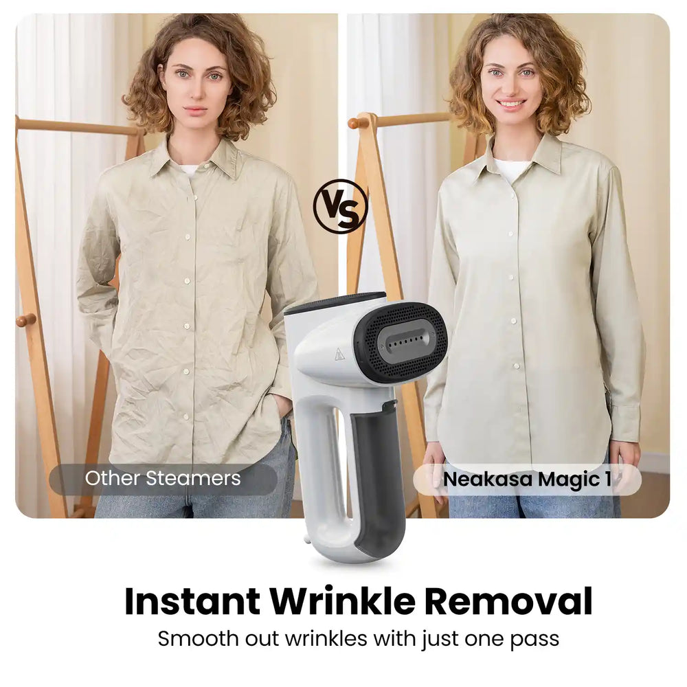 Défroisseur vapeur compact, rapide et sûr, idéal pour lisser tous types de vêtements sans les brûler comme les outils classiques. Léger, portable et prêt en quelques secondes. ⬇️