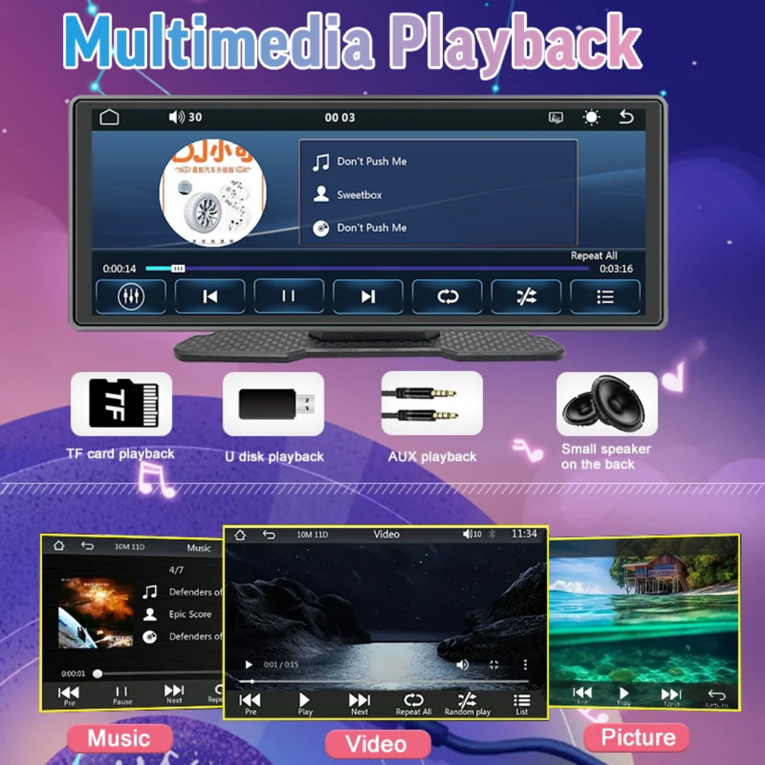 Grâce à ses connexions polyvalentes — caméra avant et arrière, entrée HDMI, USB et AV — cet écran devient un centre de contrôle complet pour votre voiture. Vous pouvez basculer entre vues en direct, images de stationnement et géolocalisation en un clic. Compatible avec les systèmes de caméras AHD, il offre une visibilité optimale et une assistance au stationnement fiable. Son interface intuitive permet une utilisation aisée même en conduite.