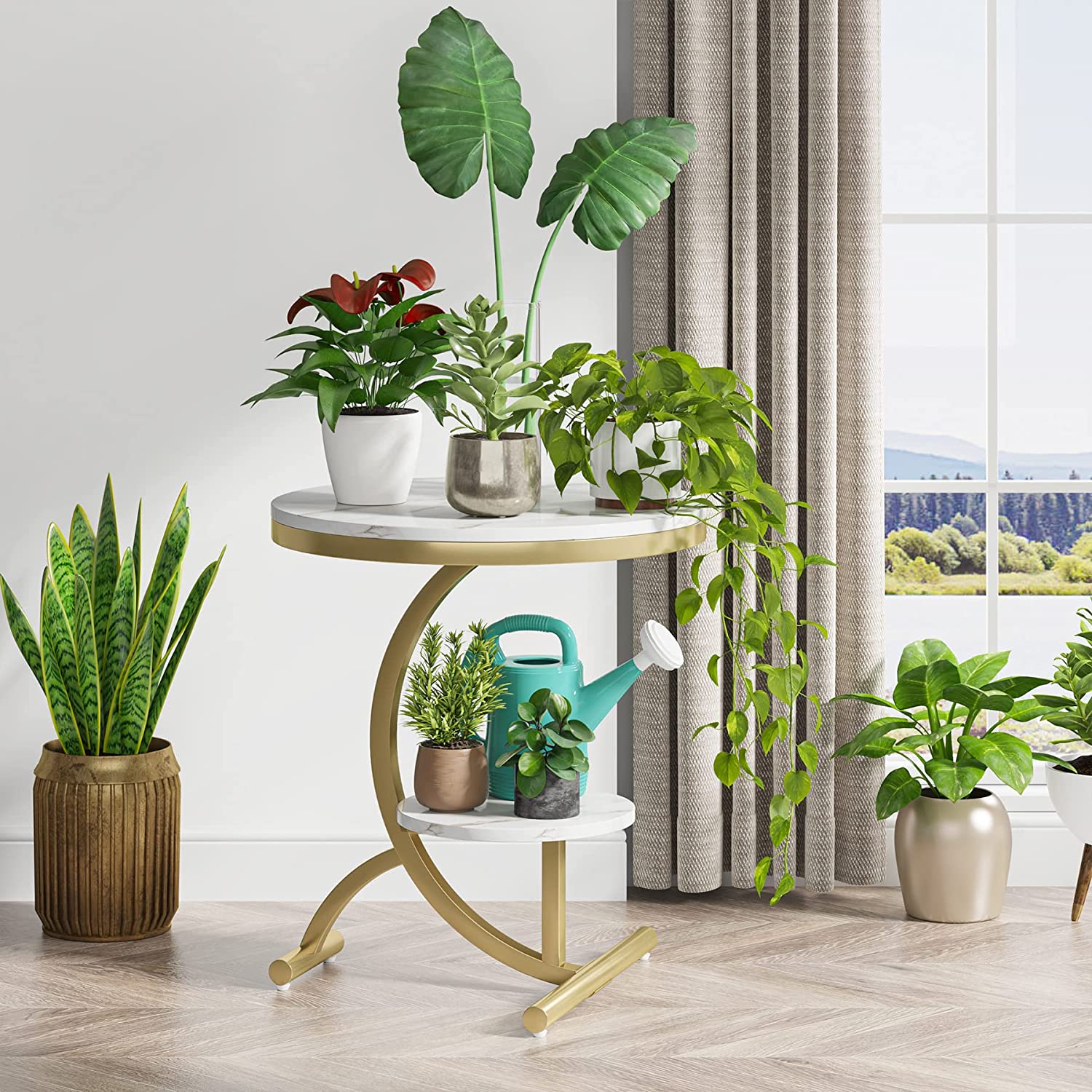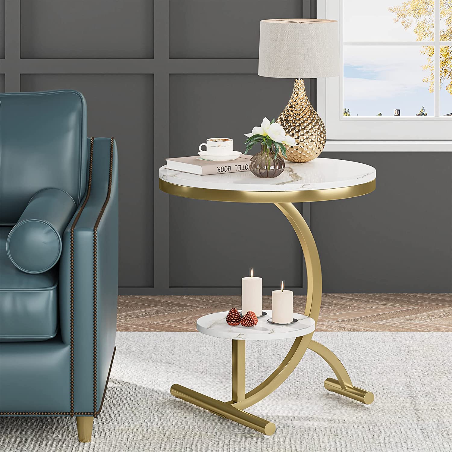 DESIGN ÉLÉGANT  – Aspect marbre, design décoratif moderne, étagère à deux niveaux avec protection du sol. Il peut être utilisé aussi bien à l'intérieur qu'à l'extérieur. Cette table ronde en marbre mesurant 50 cm de profondeur x 50 cm de largeur x 60 cm de hauteur, présente un design léger et une taille décente, ce qui est pratique à déplacer selon les besoins.
