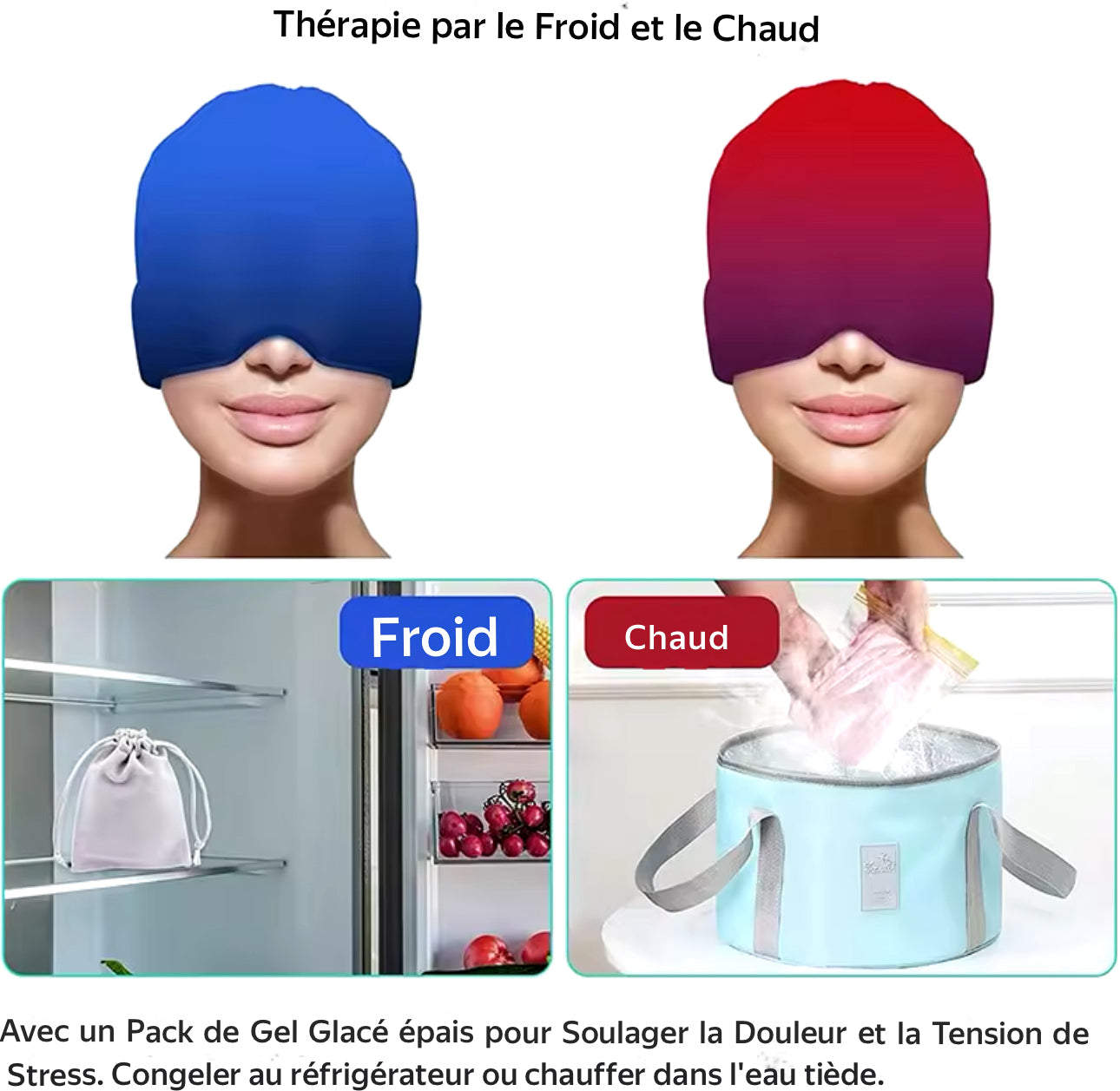 MigraRelax utilise la thérapie par le chaud et le froid pour atténuer la douleur. Il contient un gel que vous pouvez refroidir au congélateur ou réchauffer, selon vos besoins. Le bonnet entoure la tête en appliquant une pression douce et une température ciblée pour réduire l’inconfort lié aux migraines ou au stress. Grâce à la flexibilité du gel, il s’adapte confortablement aux différentes formes de tête, assurant un ajustement bien enveloppant.
