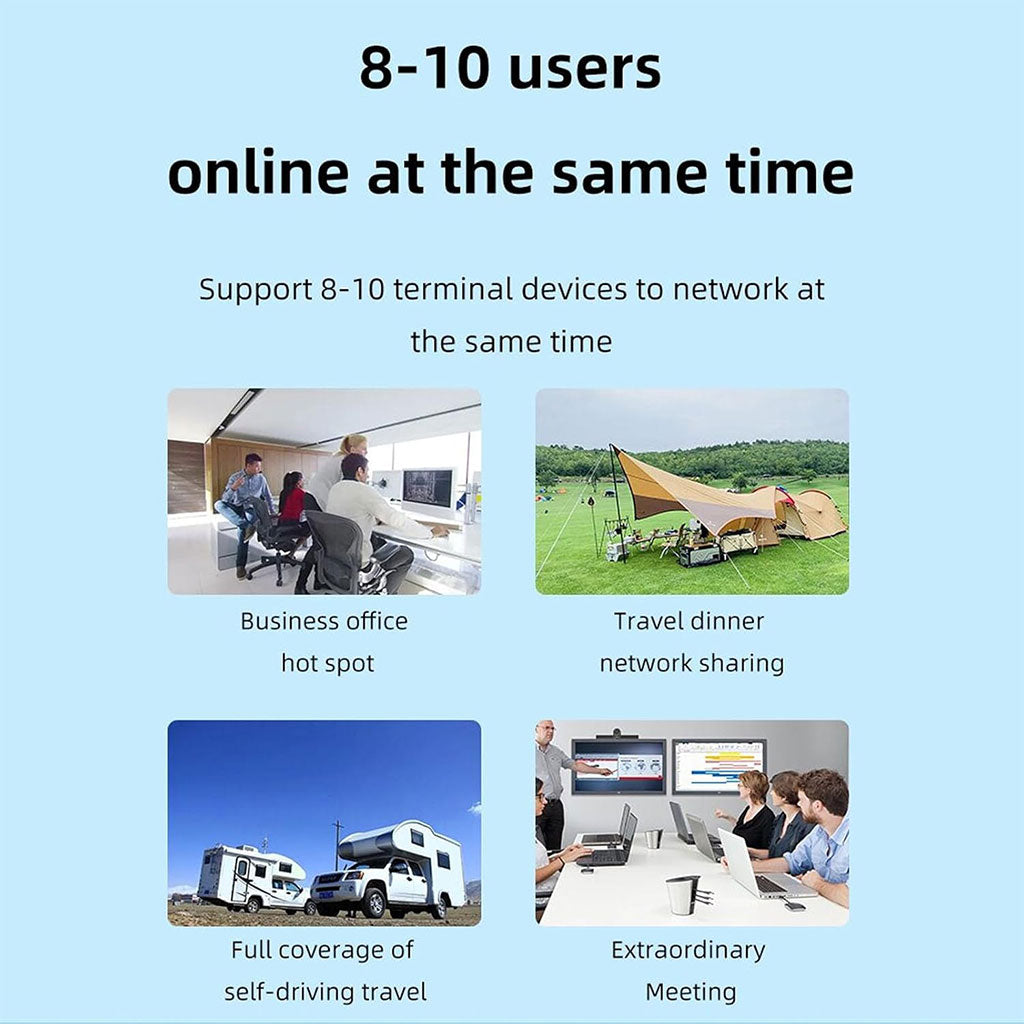 Haute vitesse : portable prend en charge la norme LTE CAT4, accès Internet haut débit 300 Mbps, mais cela dépend principalement de la puissance du . Il peut connecter 10 appareils en même temps, prendre en charge les smartphones, tablettes, ordinateurs portables, etc. La distance effective peut atteindre 10 m/32,8 pieds.