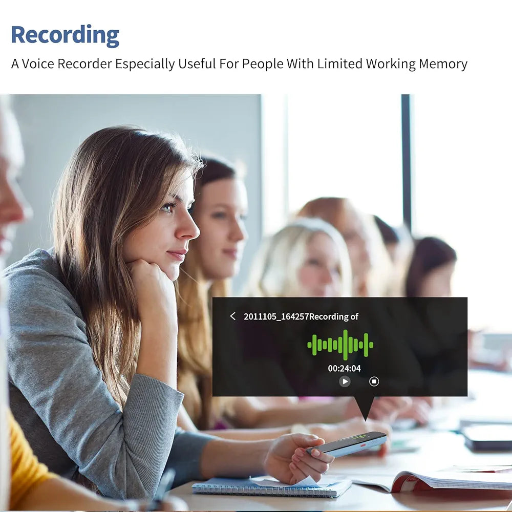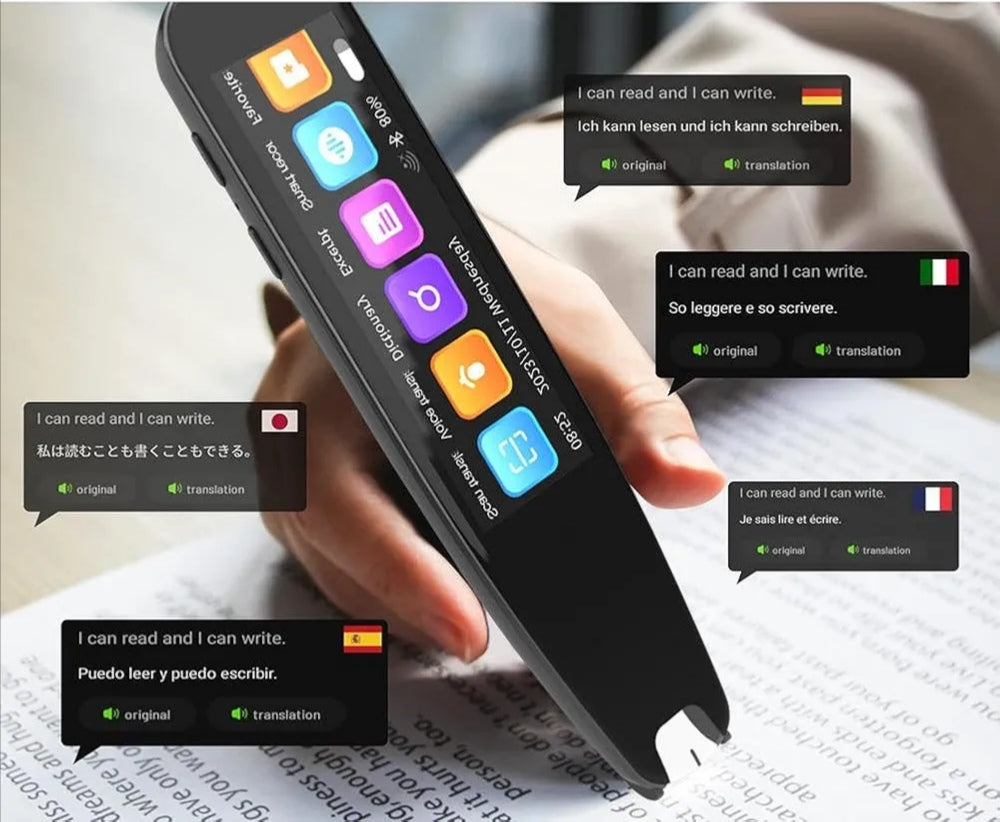 Polyvalent et intuitif : traduction instantanée après simple balayage du texte, lecture audio, enregistrement vocal intégré, explication contextuelle, et partage direct des fichiers sur smartphone ou PC—tout est pensé pour une interaction fluide et rapide.