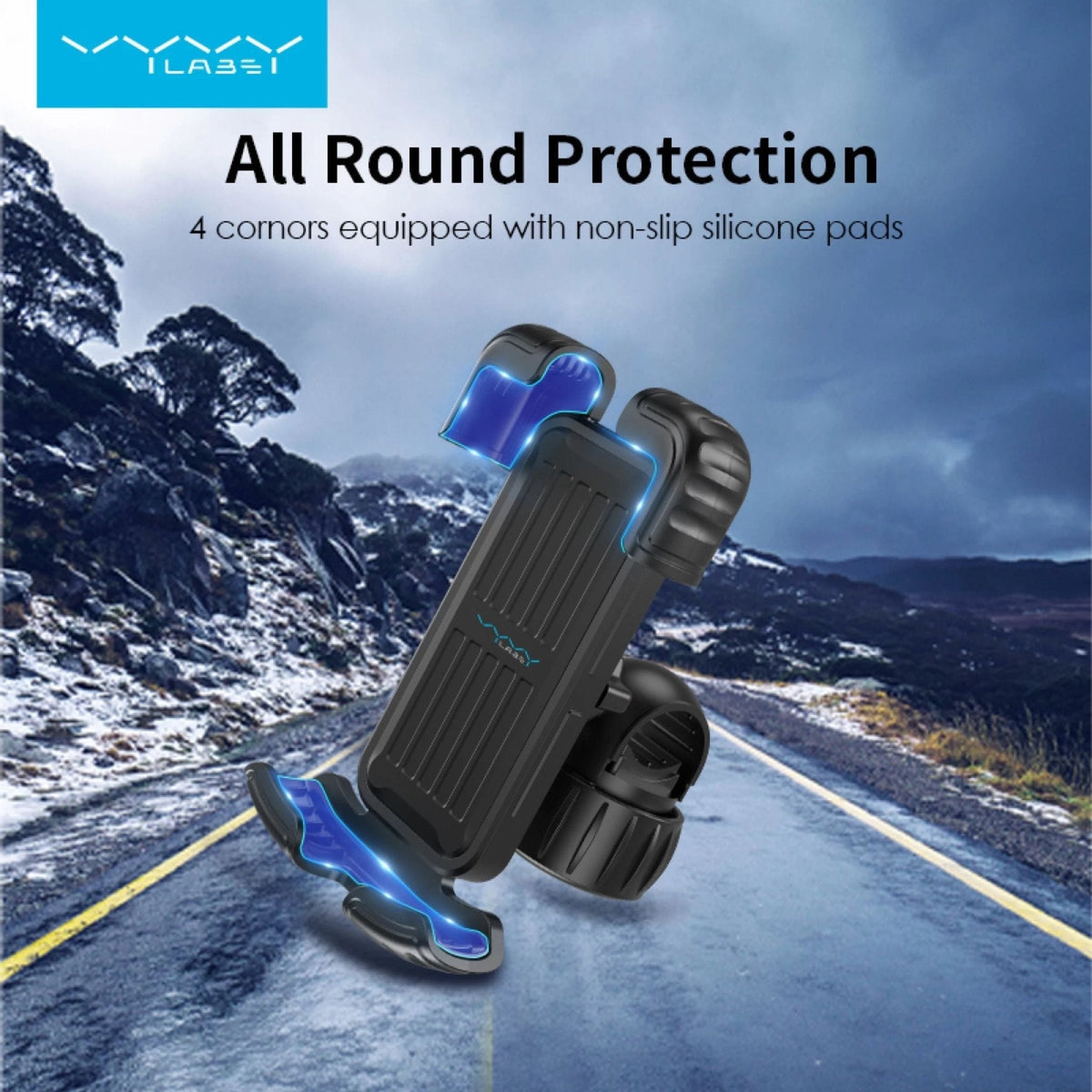 Prise en main solide et sûre : le support de téléphone pour moto est doté de 4 bras de serrage en acier inoxydable avec des coins de support pour garantir que votre téléphone reste solidement fixé au guidon. Il n'endommagera pas votre téléphone portable, même sur une route cahoteuse et cahoteuse.